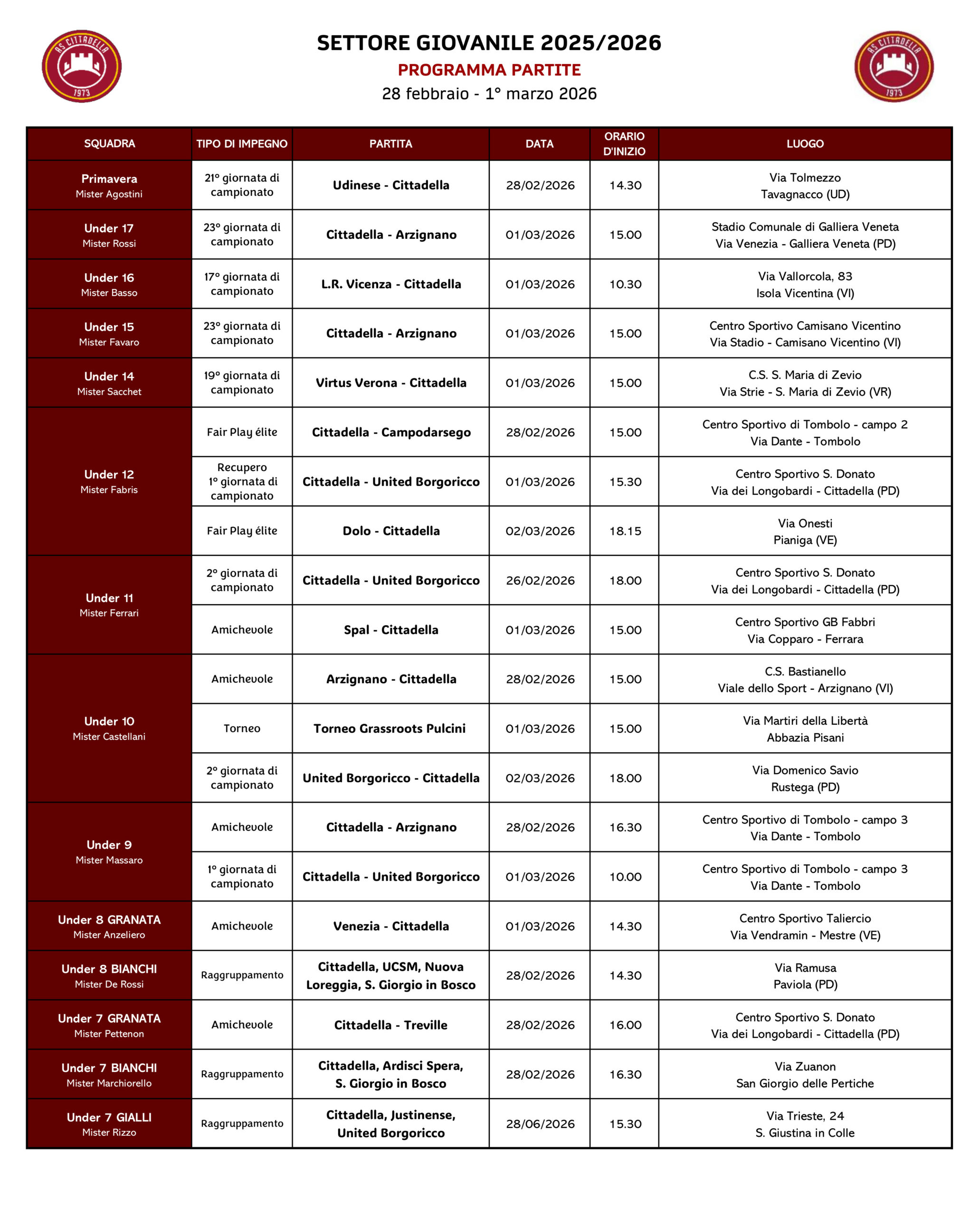 A.S. Cittadella s.r.l. Unipersonale – Via Ca’ dai Pase n° 41/B, 35013 CITTADELLA – C.F. 01317970240 – P.IVA 02306920287 – Reg.Imp. n° 01317970240 – R.E.A. PD: 0221075 – Capitale Sociale € 2.500.000,00 int.ver.