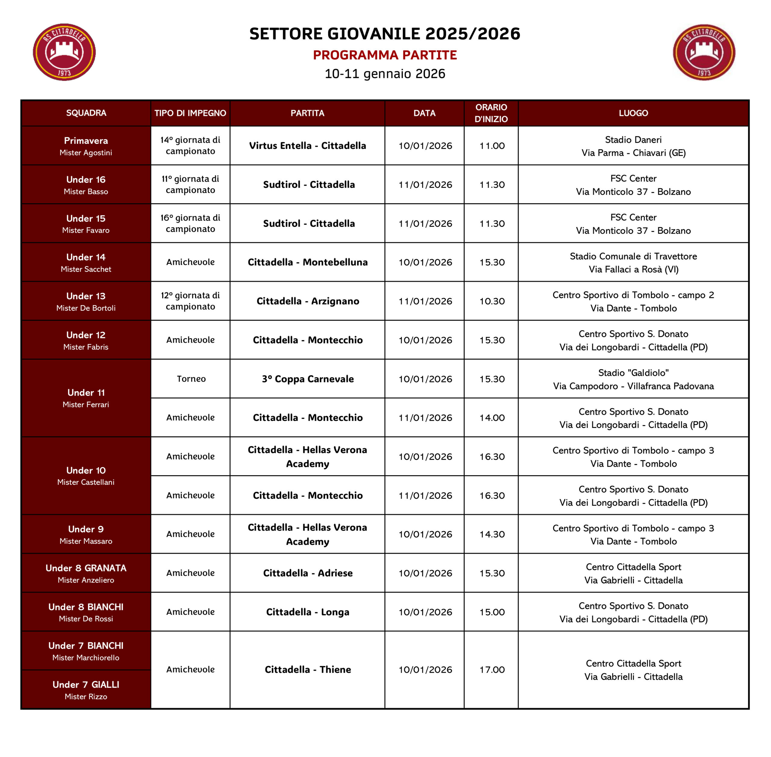 A.S. Cittadella s.r.l. Unipersonale – Via Ca’ dai Pase n° 41/B, 35013 CITTADELLA – C.F. 01317970240 – P.IVA 02306920287 – Reg.Imp. n° 01317970240 – R.E.A. PD: 0221075 – Capitale Sociale € 2.500.000,00 int.ver.